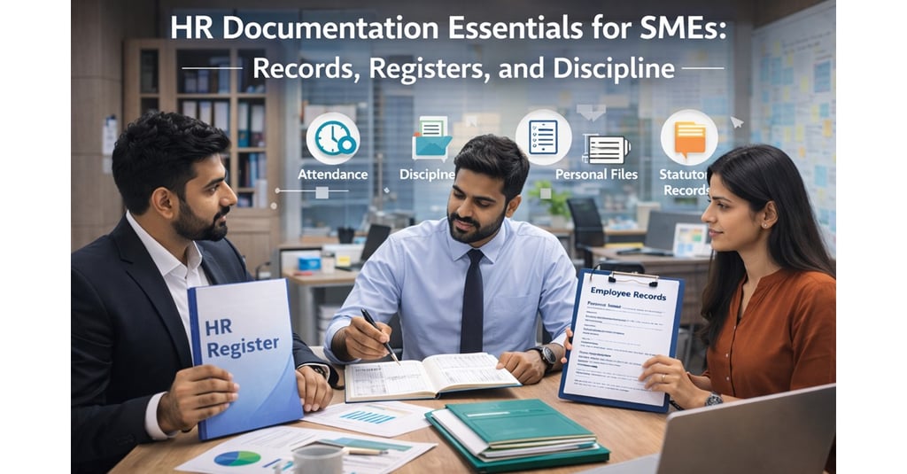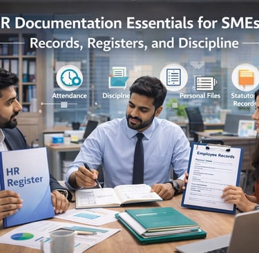 HR documentation does not need to be bulky or legalistic. What SMEs need is the right documents, maintained consistently, and aligned to day-to-day operations. This article explains the essential HR records and registers Indian SMEs must maintain, and how documentation supports fair discipline and compliance.
