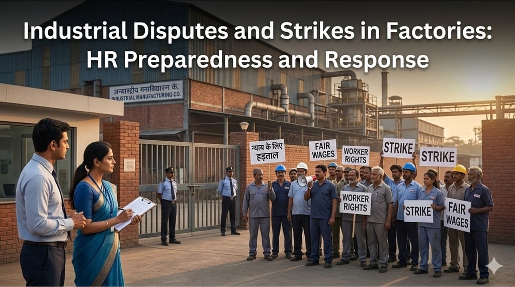 This article explains how HR must prepare for, respond to, and manage industrial disputes and strikes in Indian factories.