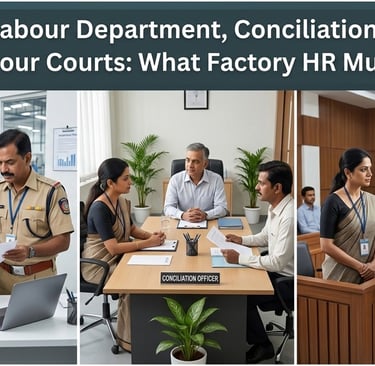 The Labour Department, Conciliation Officers, and Labour Courts are integral to India’s industrial relations framework. For Factory HR teams, effective engagement with these authorities requires legal awareness, disciplined preparation, and mature judgement.